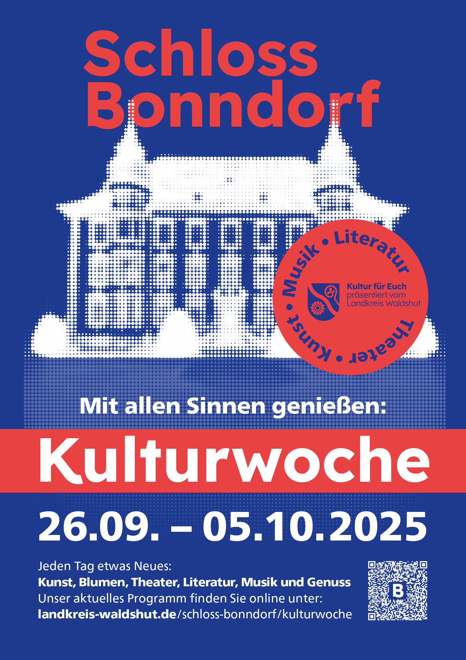 Schloss Bonndorf öffnet seine Tore wieder für die Kultur. Eine Woche lang werden Sie überrascht mit Kunst, Floristik, Theater, Literatur und natürlich Musik. Es soll ein Fest für alle Sinne und für alle Generationen werden.